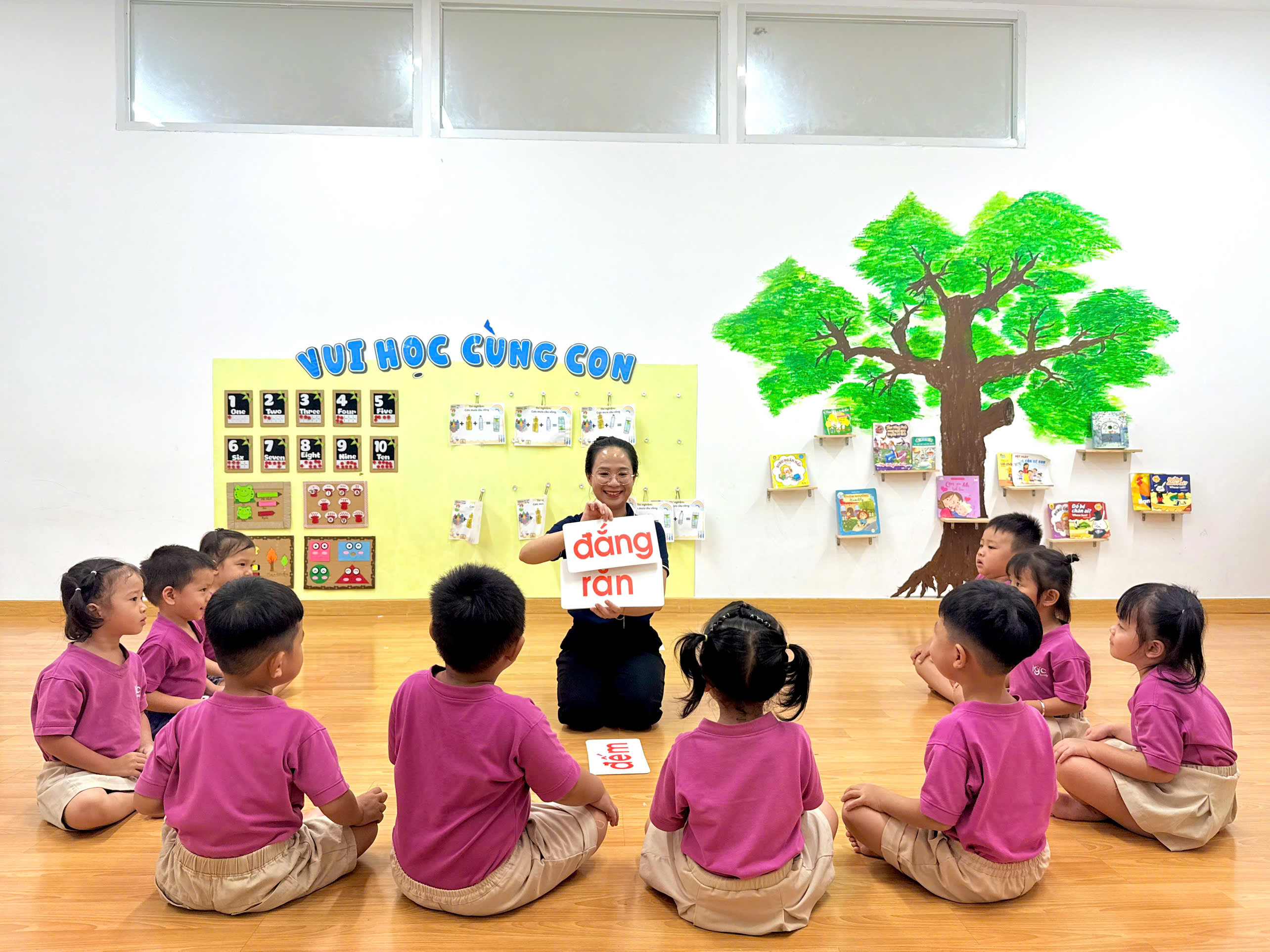 Độ tuổi Mầm non chính là “giai đoạn vàng” để giúp trẻ phát triển tối ưu các mặt nhận thức, đặc biệt là ngôn ngữ. Do đó, tại IGC Kiddy, việc phát triển ngôn ngữ cho trẻ luôn được quan tâm và chú trọng. Ở trường, trẻ sẽ được trao cơ hội để làm quen với ngôn ngữ mọi lúc mọi nơi. Phương pháp dạy trẻ biết đọc sớm Glenn Doman với lịch trình hàng ngày góp phần giúp trẻ phát triển ngôn ngữ một cách toàn diện. Phương pháp Glenn Doman tập trung vào việc tác động nhằm làm tăng kết nối giữa các tế bào thần kinh vào đúng giai đoạn sinh trưởng mạnh nhất của não, đây là phương pháp cho trẻ có cơ hội được tiếp cận với ngôn ngữ tiếng Việt, dưới sự tổ chức sinh động của đội ngũ giáo viên cùng với việc sử dụng các bộ giáo cụ sinh động, đúng chuẩn. Với phương pháp Glenn Doman, chủ yếu trẻ ghi nhận các thẻ chữ bằng trí nhớ hình ảnh, việc học chữ đối với trẻ mầm non trở thành một trò chơi thú vị mỗi ngày, và trẻ sẽ bắt đầu với những từ, những cụm từ và những câu có ý nghĩa thay vì là bảng chữ cái hay là cách đánh vần. Việc nhìn mặt chữ và nghe phát âm theo lịch học ổn định thường xuyên mỗi ngày sẽ giúp trẻ ghi nhớ một cách tự nhiên. Chương trình học này liên kết với chương trình My Reading Tree, khơi dậy niềm đam mê đọc sách và việc đọc sách trở nên dễ dàng hơn nếu con có thể nhận biết chữ sớm. Với lộ trình học cụ thể từ nhà trẻ (18 tháng - 36 tháng) đến mẫu giáo (từ 3 tuổi - 5 tuổi), đặc biệt chú trọng vào giai đoạn nhà trẻ khi mà ngôn ngữ của trẻ đang phát triển tốt nhất, sự tác động bởi phương pháp Glenn Doman sẽ giúp trẻ: