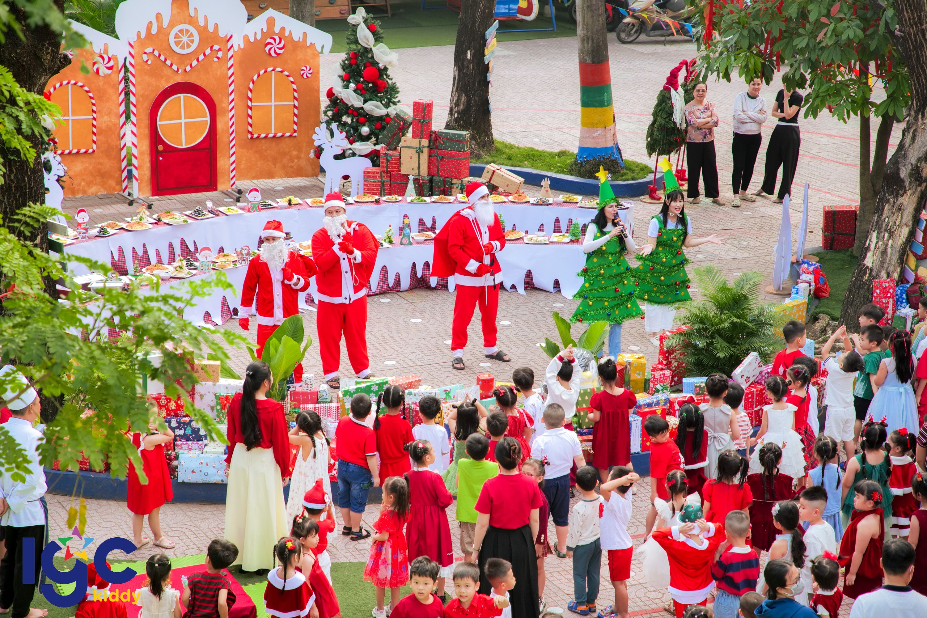 Vừa qua, các bạn nhỏ trường IGC KiddyTrảng Dài đã rất vui và hào hứng khi được tham gia chuỗi các hoạt động chào đón Giáng sinh như: Tham gia tiệc buffet giáng sinh ấm áp với nhiều món ăn hấp dẫn, ngon miệng và đẹp mắt; Tham gia hoạt động giao lưu văn nghệ cùng với ông già Noel; Chụp hình lưu niệm cùng với ông già Noel và những phần quà bé xinh,…